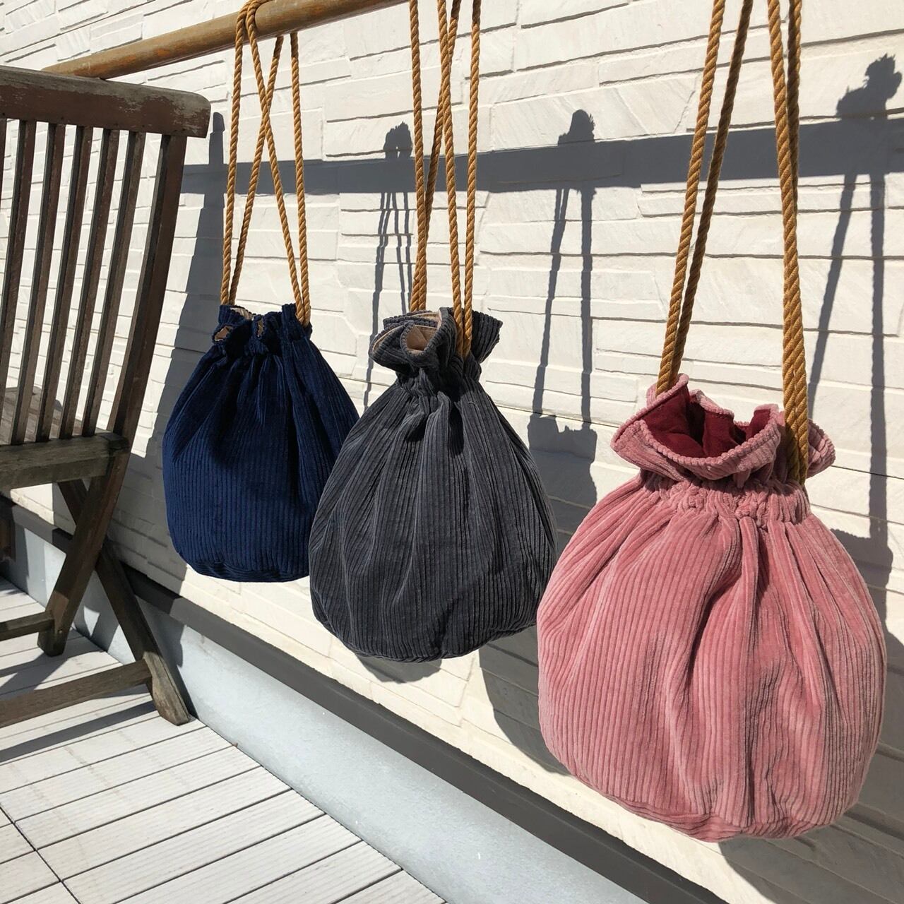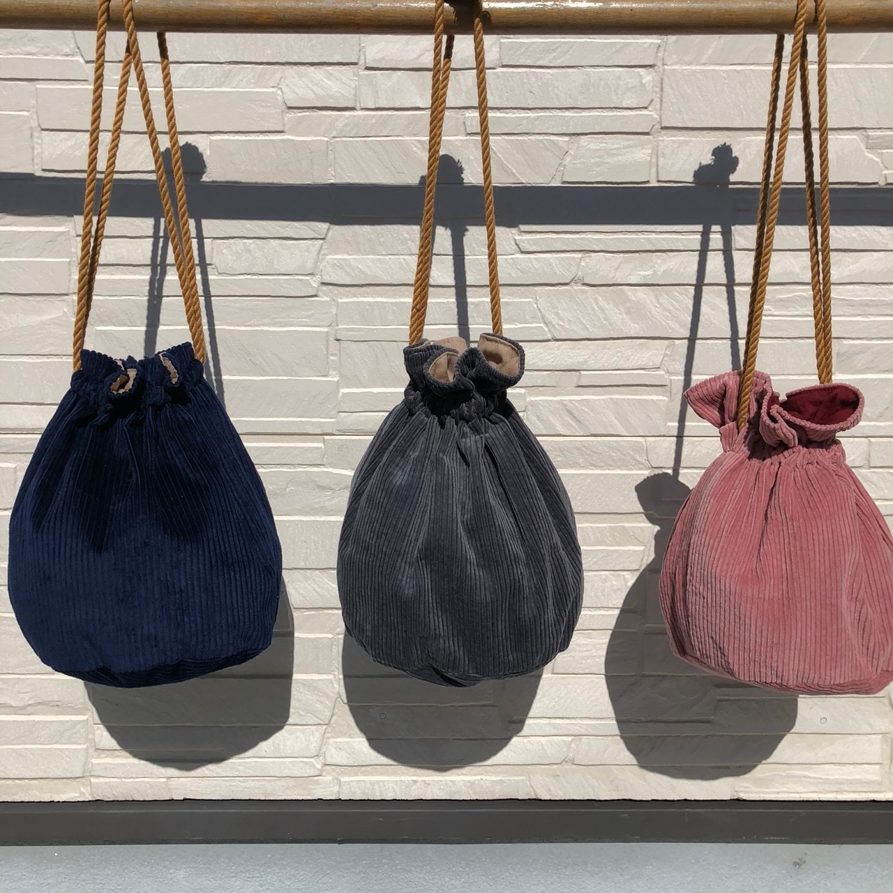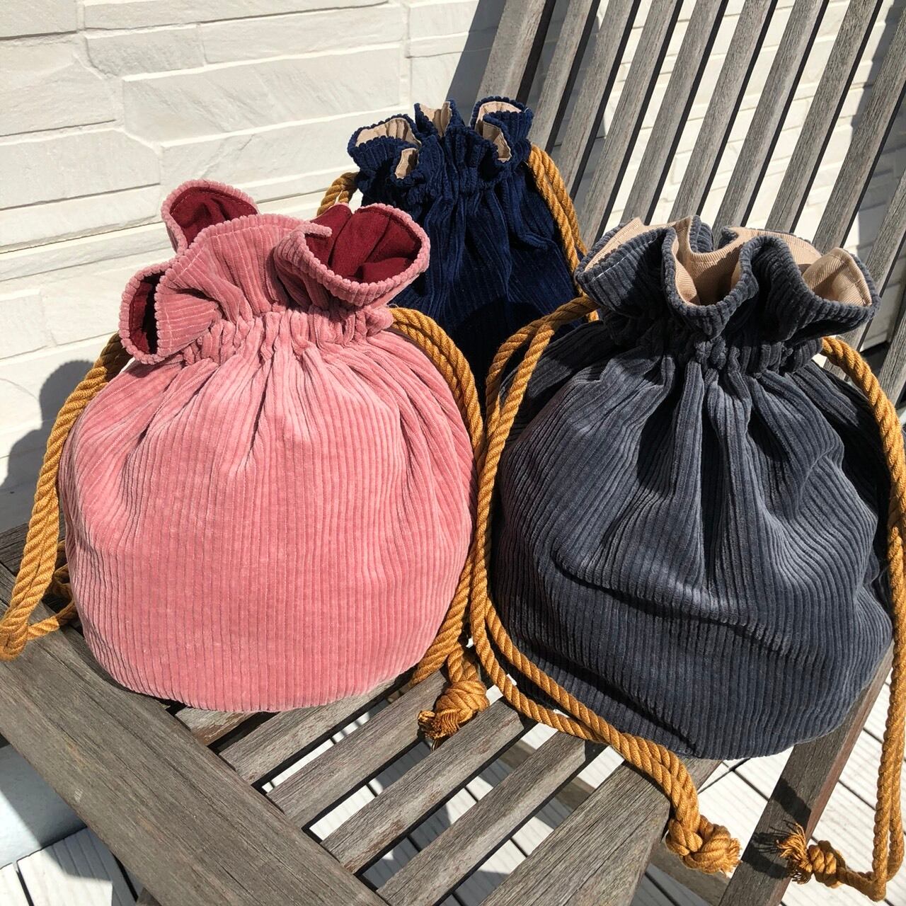 ピンクコーデュロイ×無地レッドです。