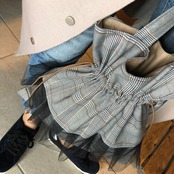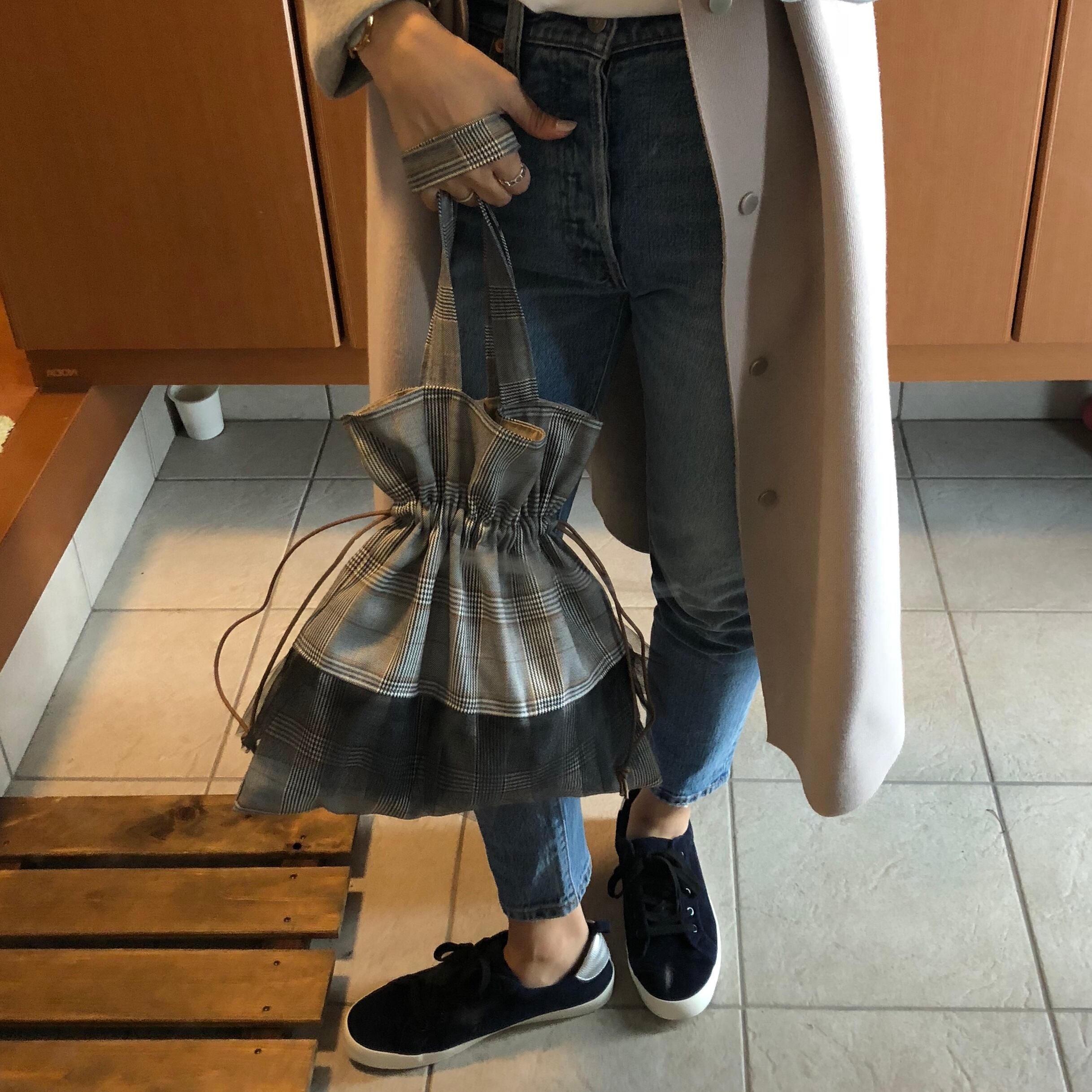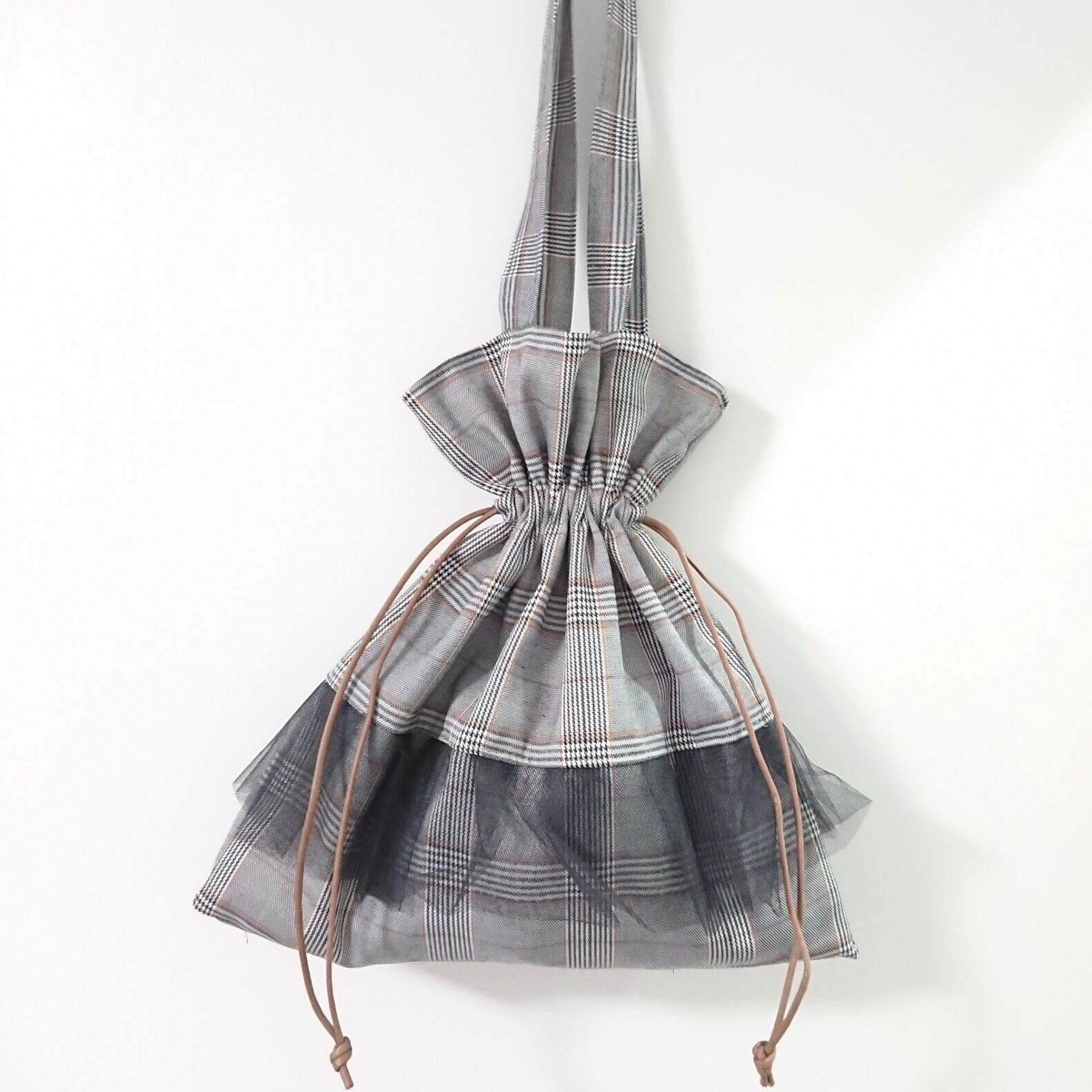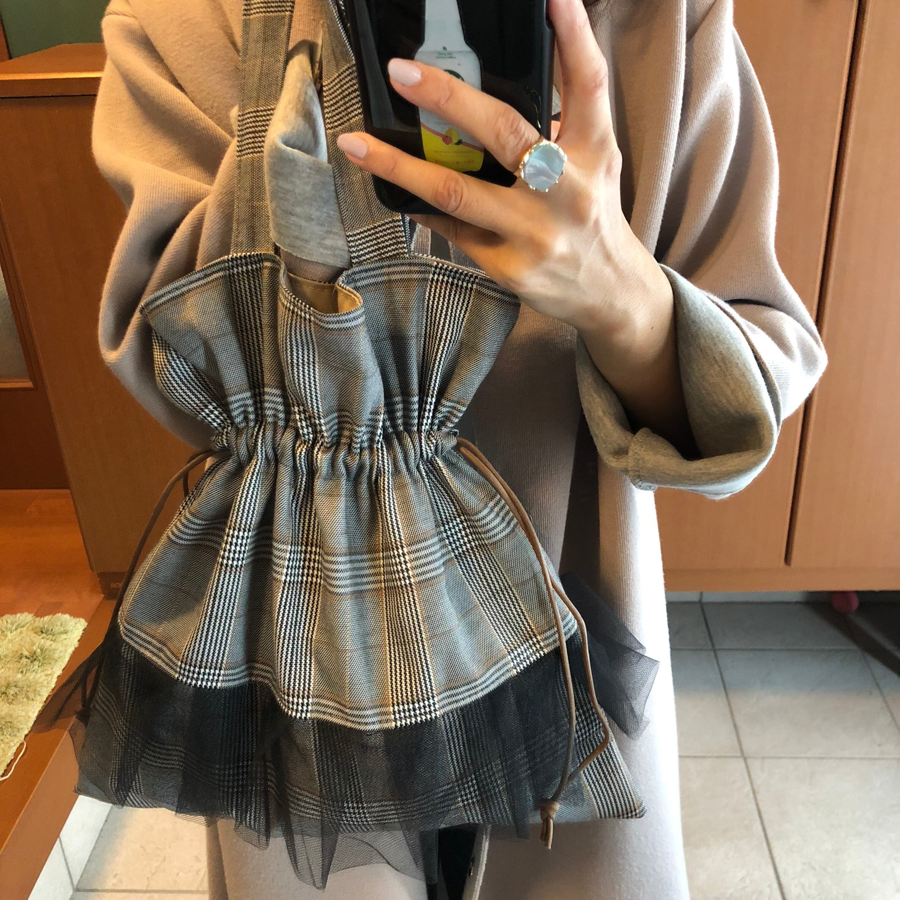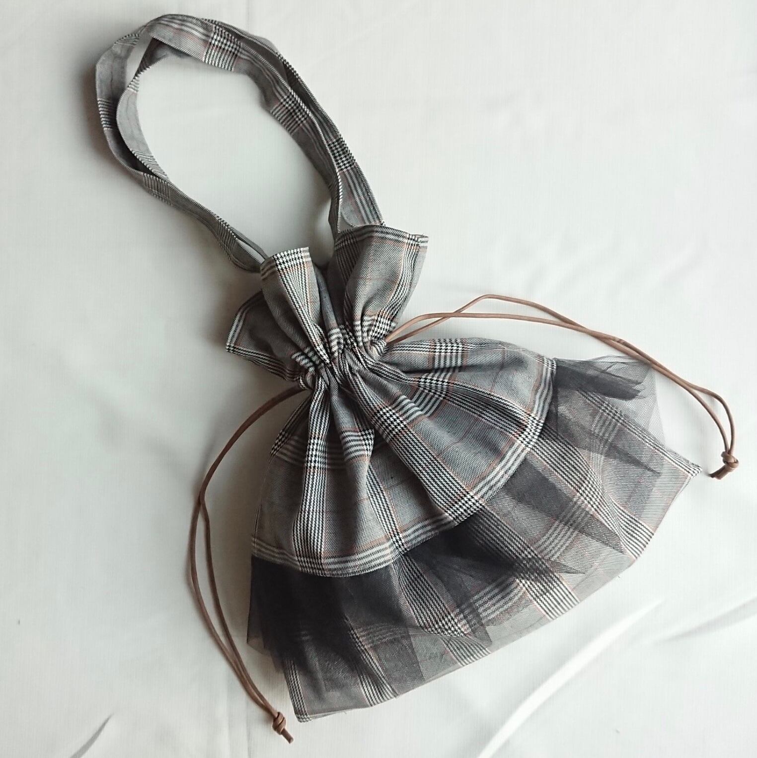 グレンチェックとチュールの組み合わせが可愛い巾着バッグです\♡/