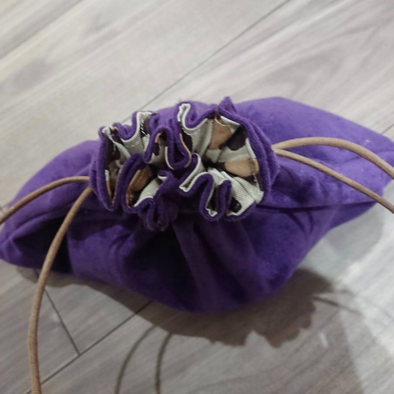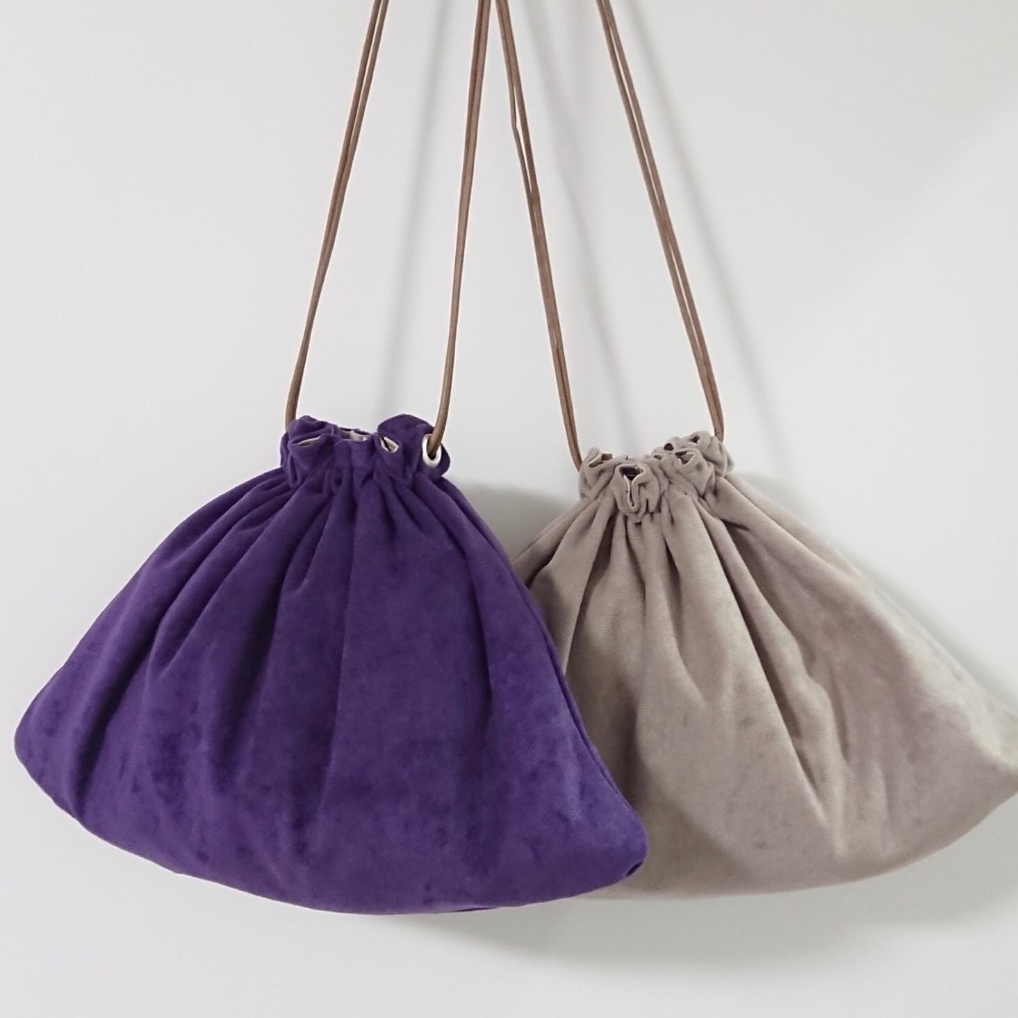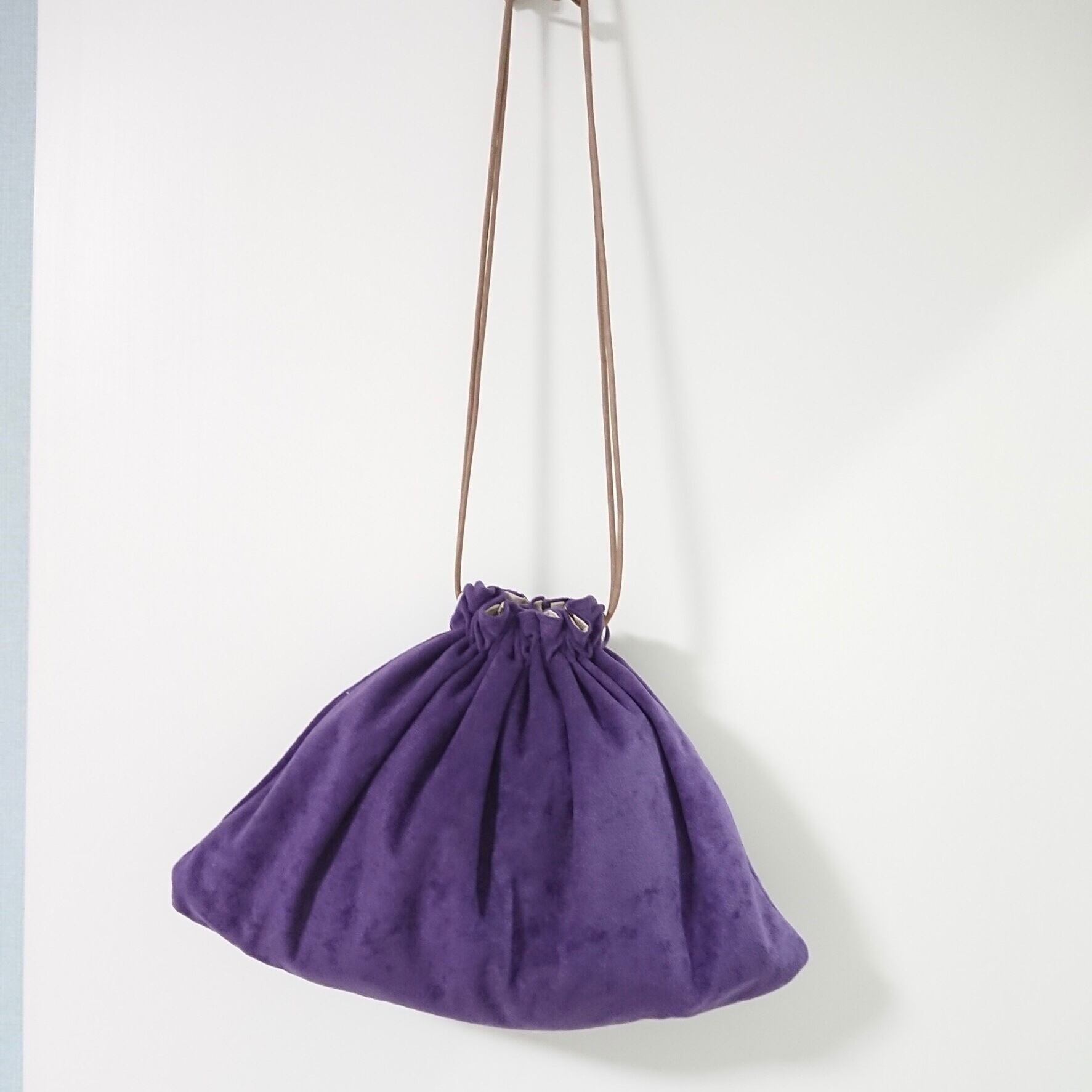 オシャレなパープルの三角巾着です