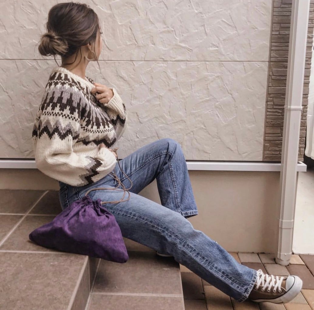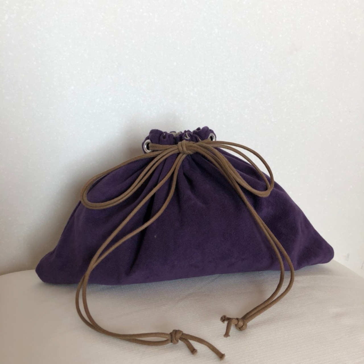 ベロア三角巾着パープル
