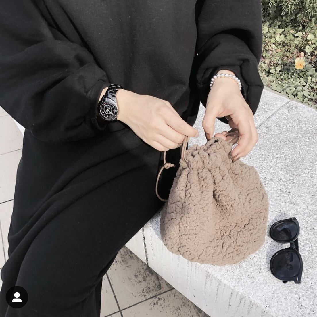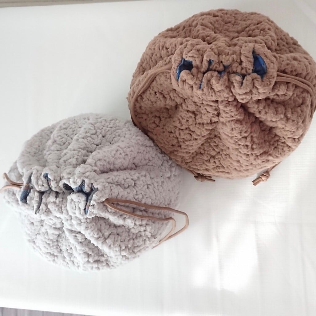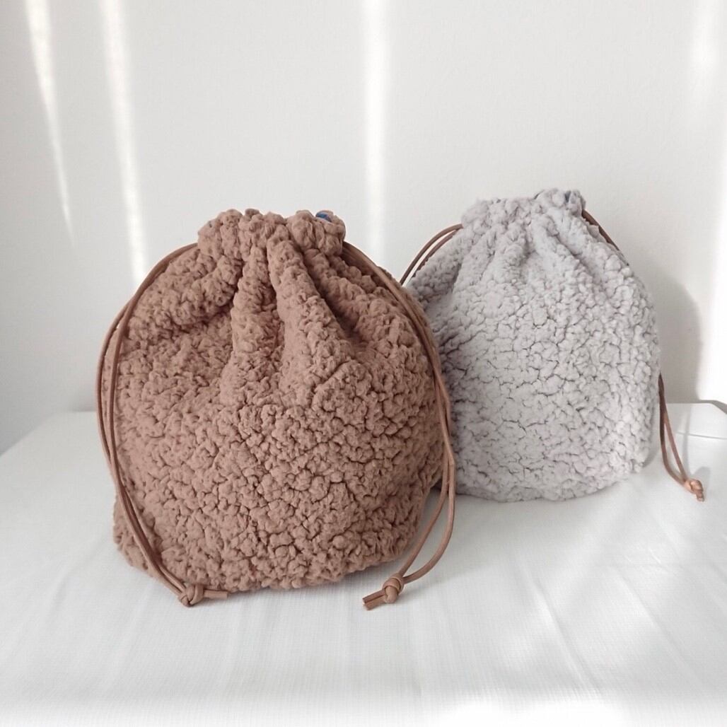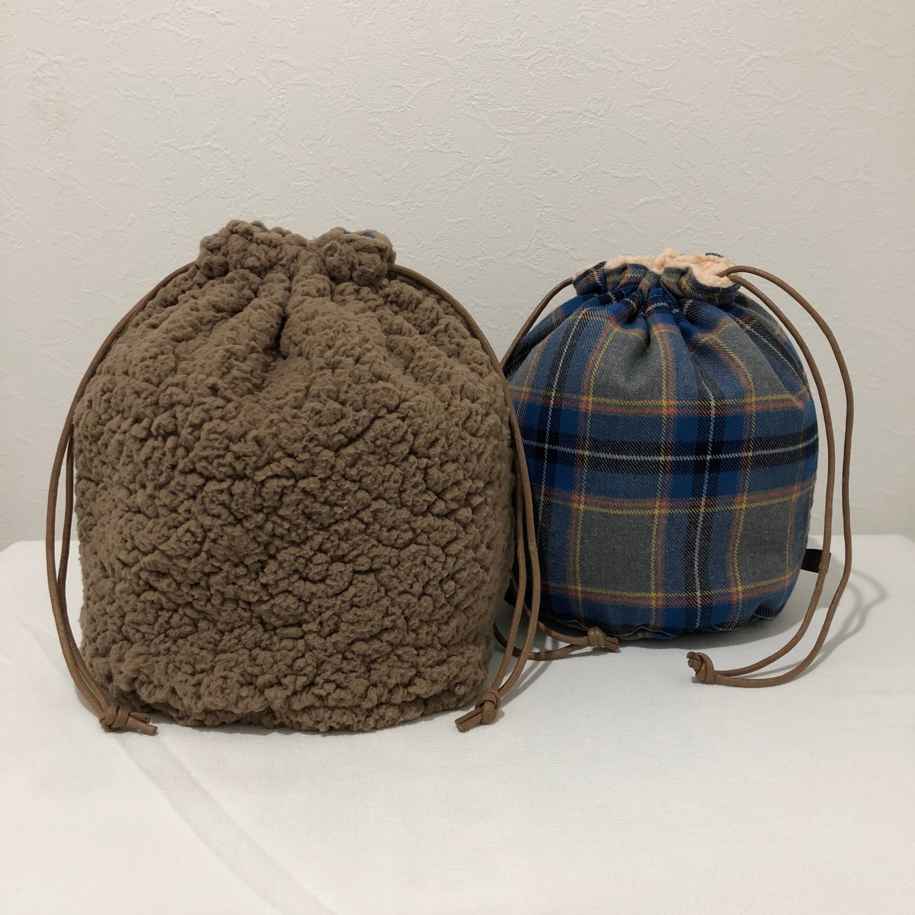 ボア巾着の裏地にブルーチェックが登場(о´∀`о)