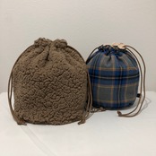 モカボア×ブルーチェック巾着