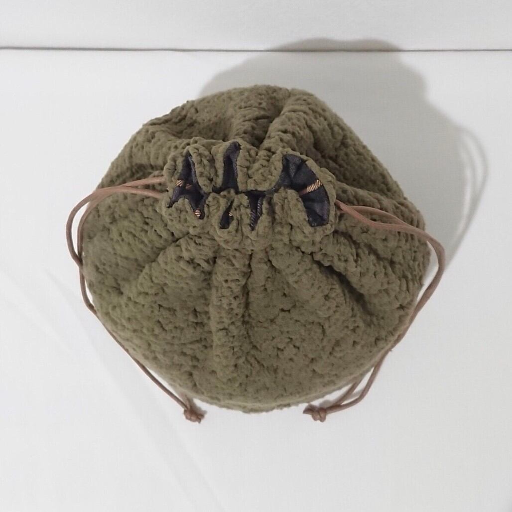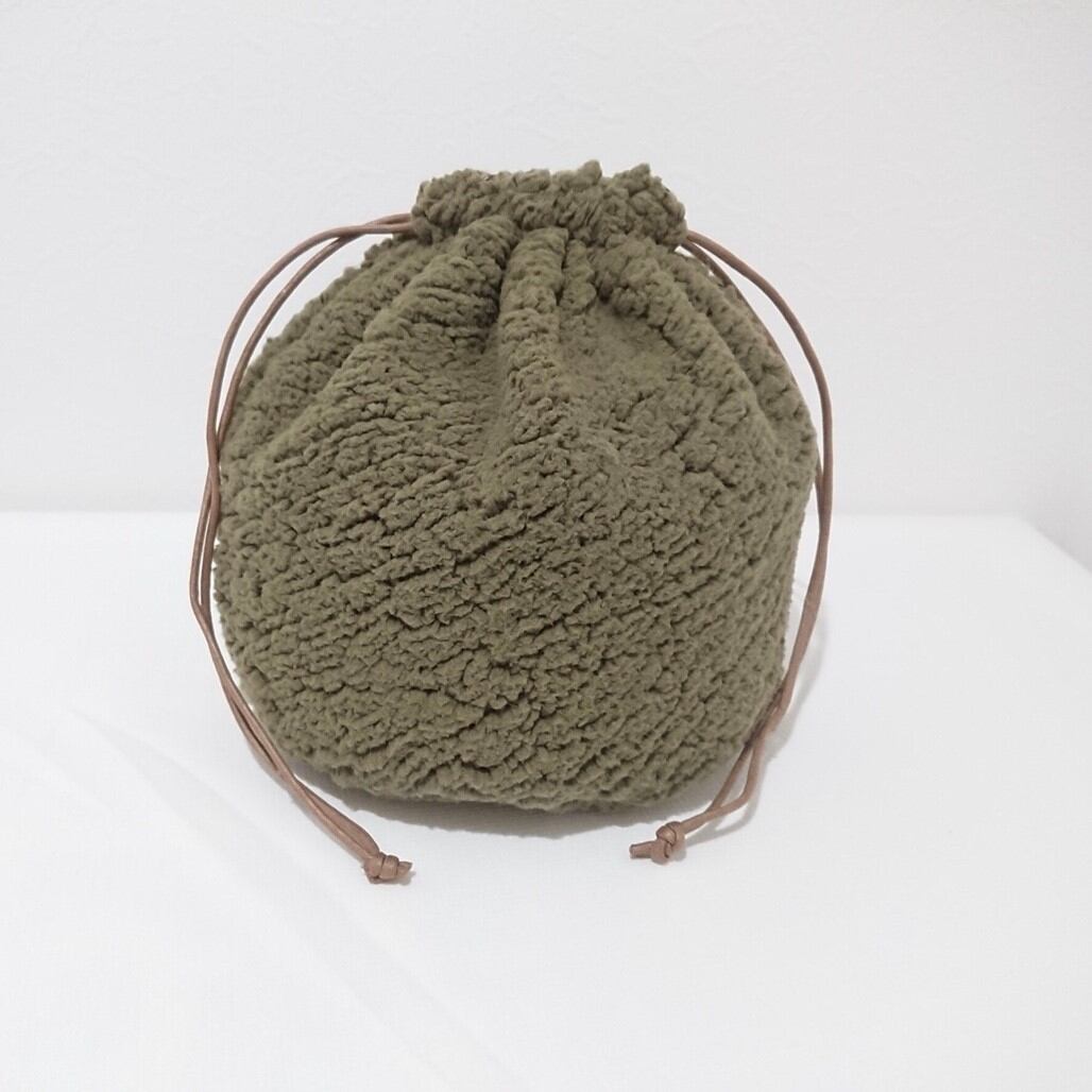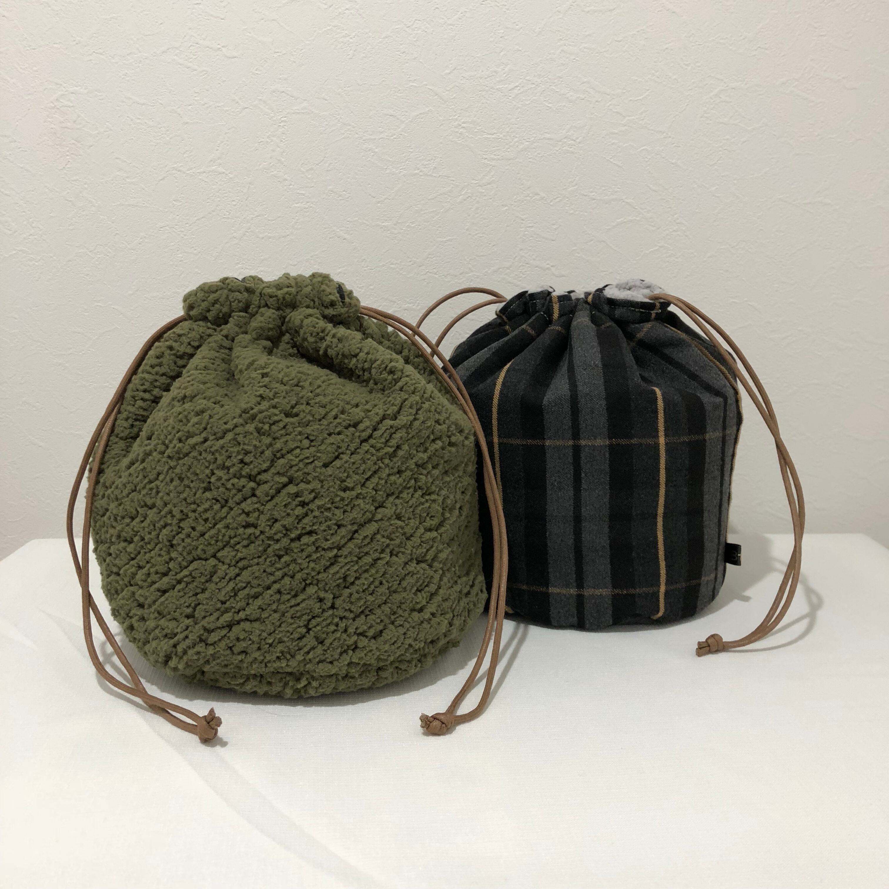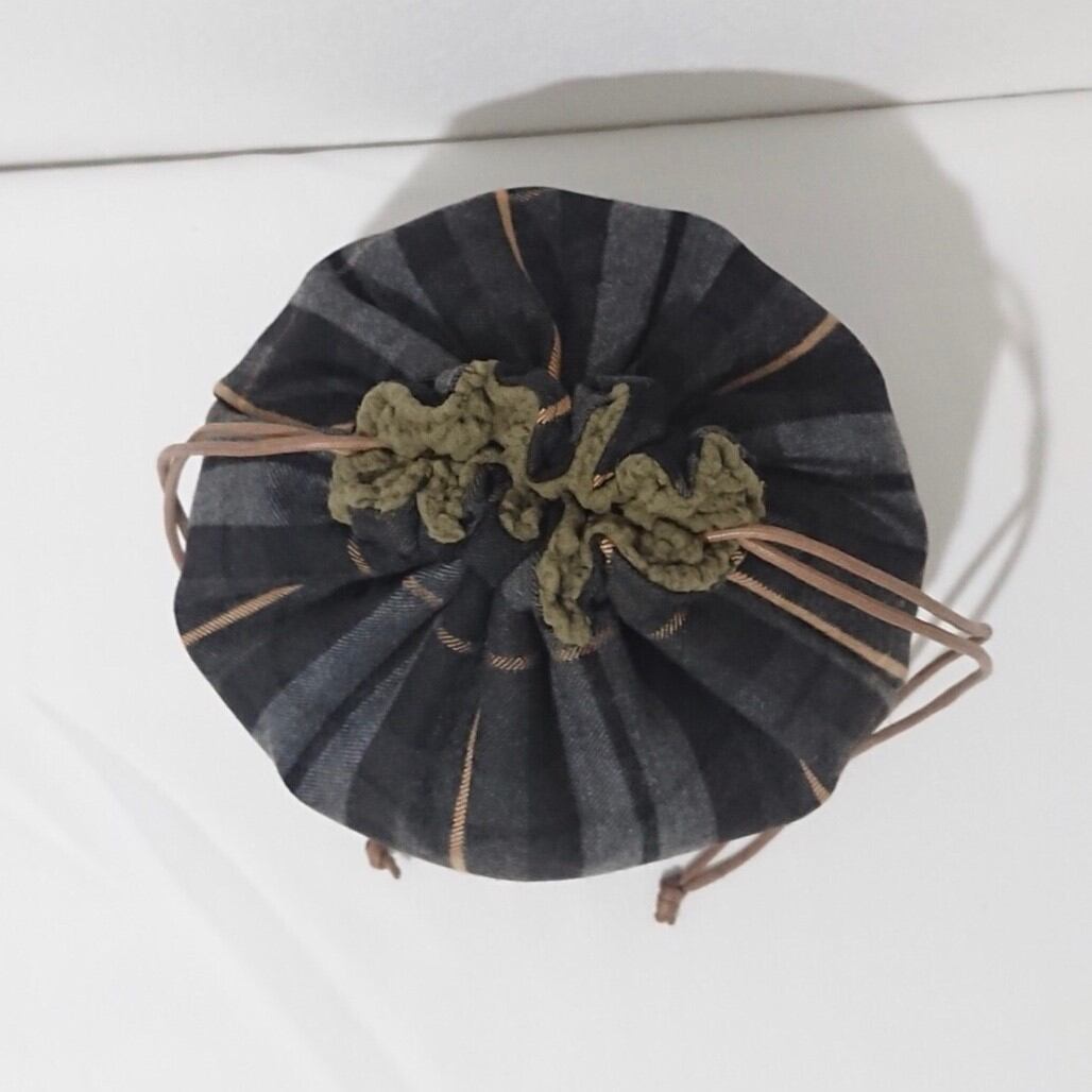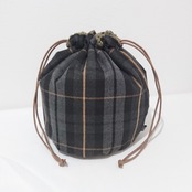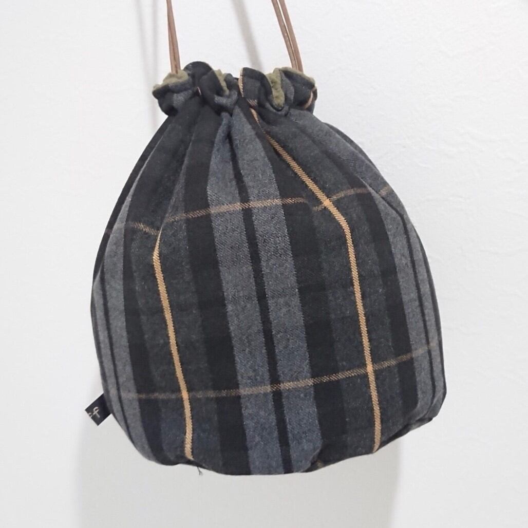 カーキボア×ブラックチェック巾着