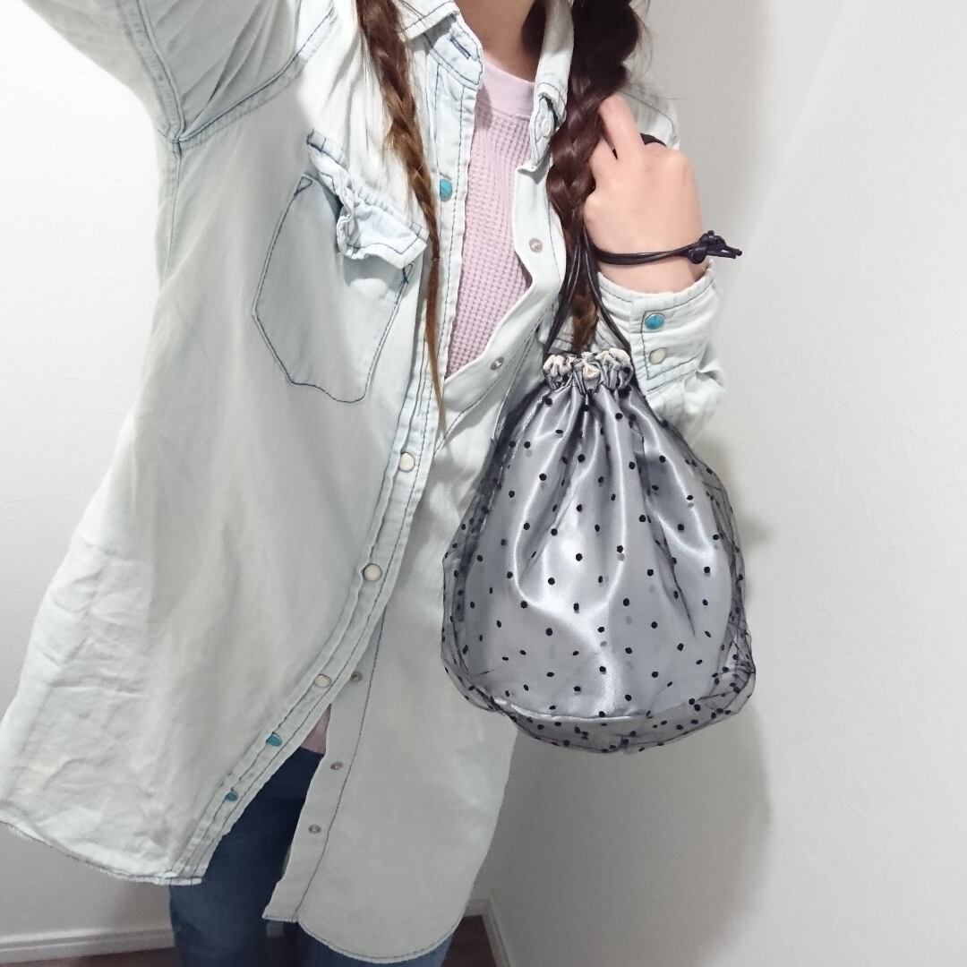 silver×tulle 巾着