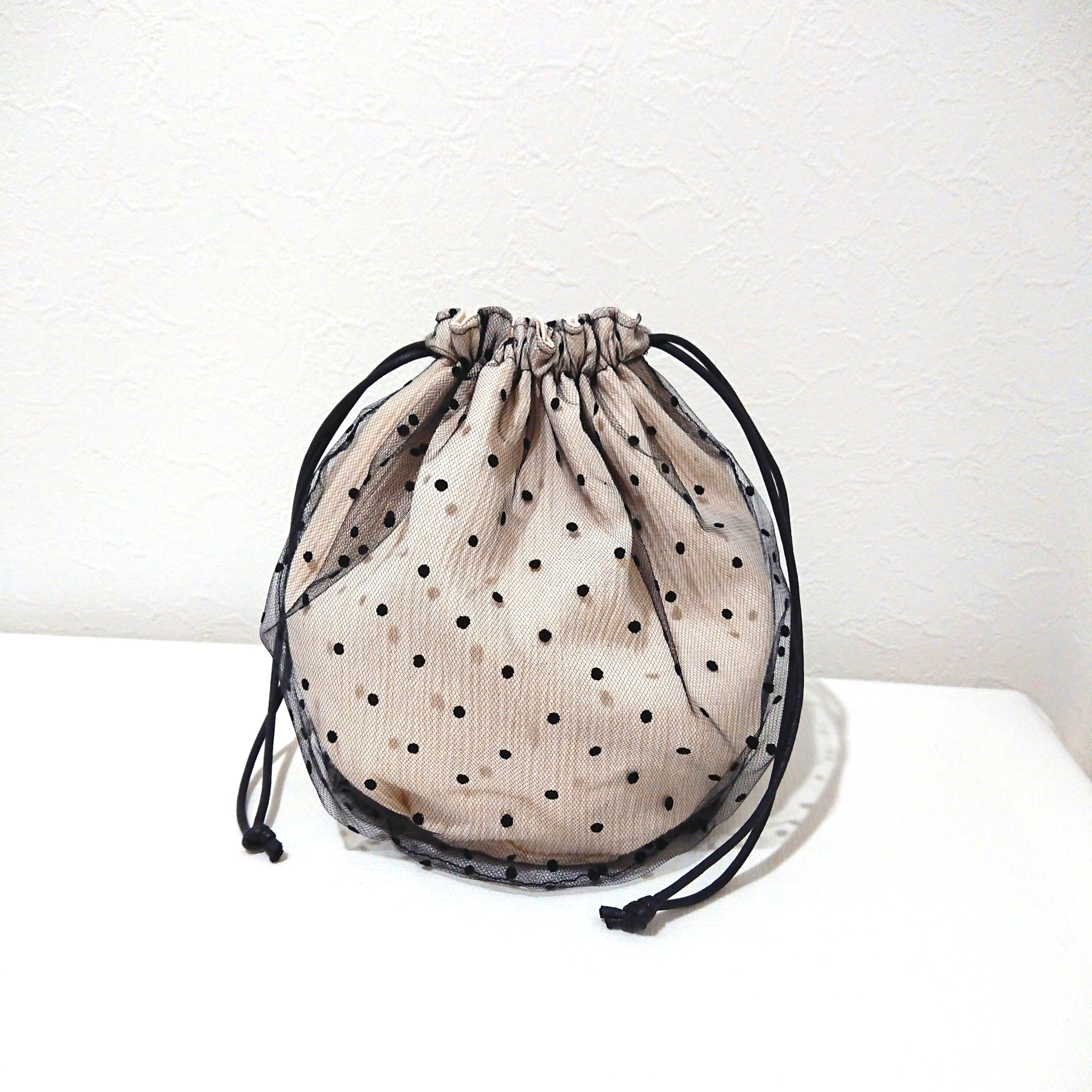 tulle×white 巾着