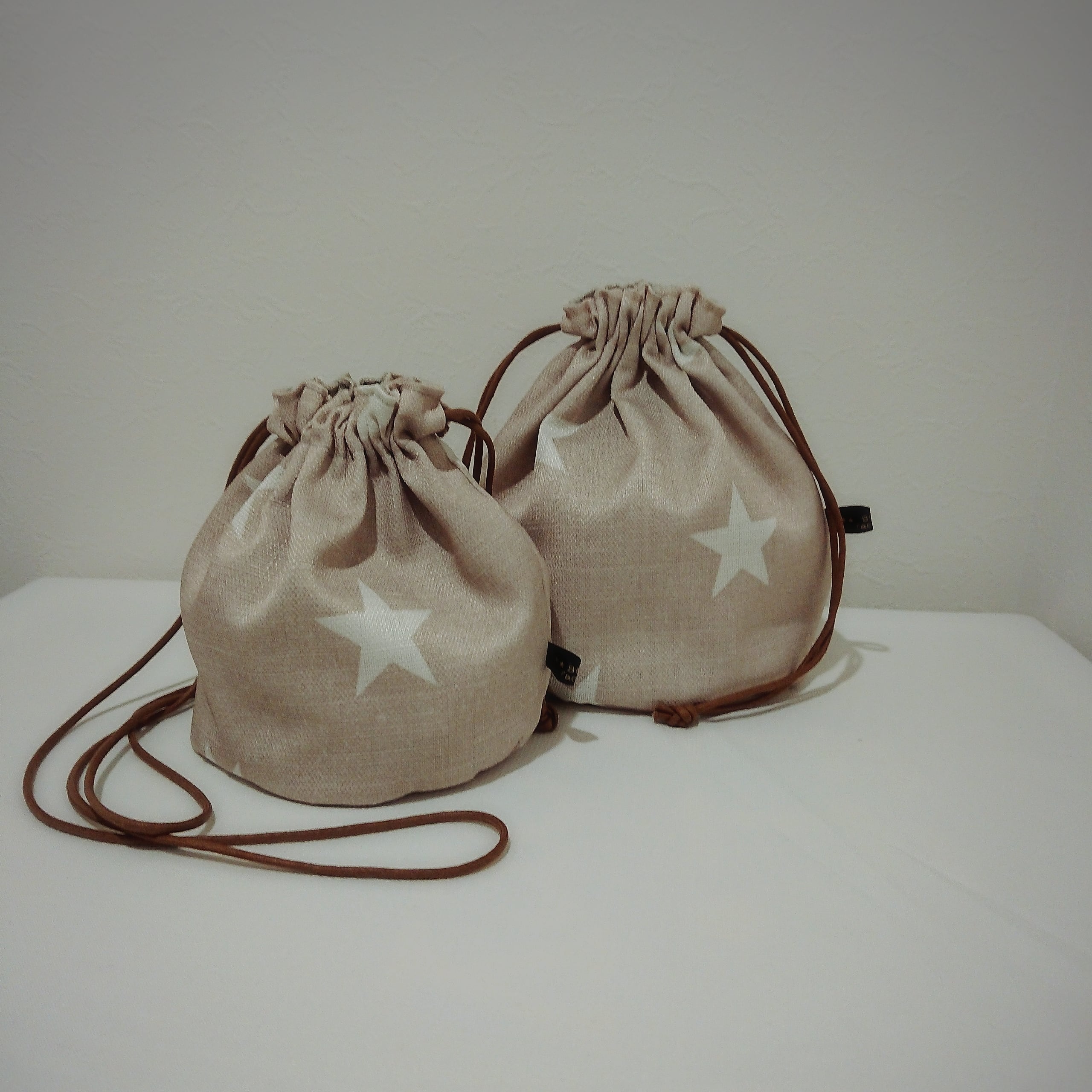 優しい色合いの巾着bagできました