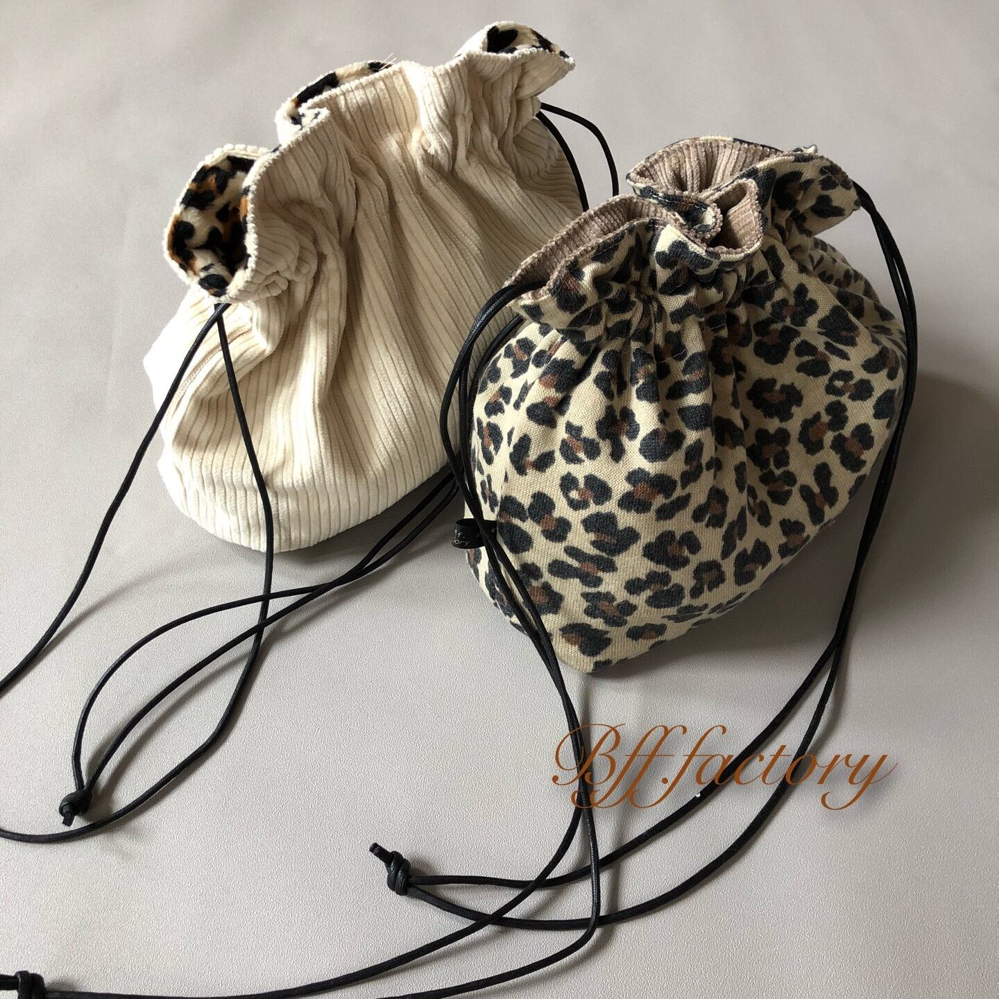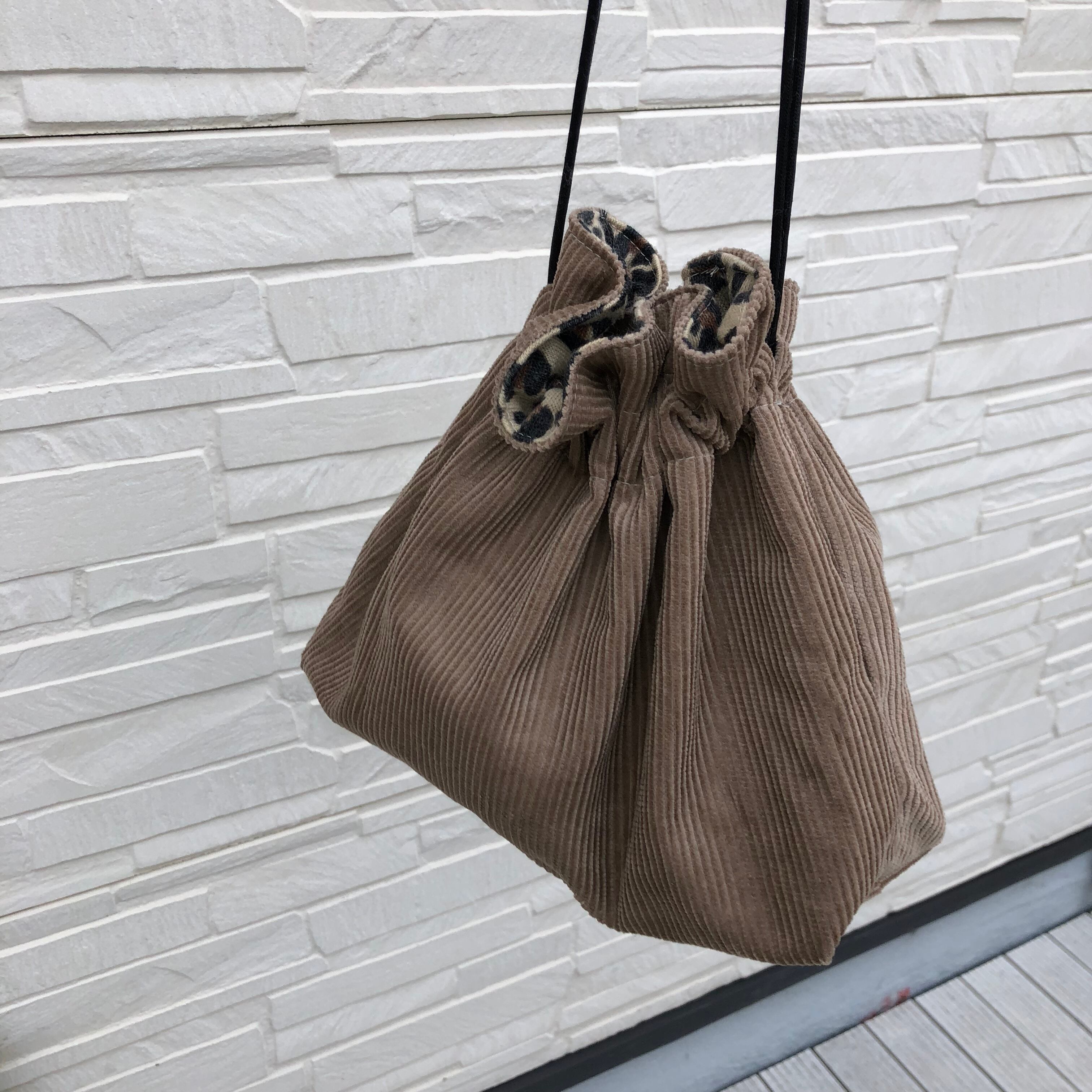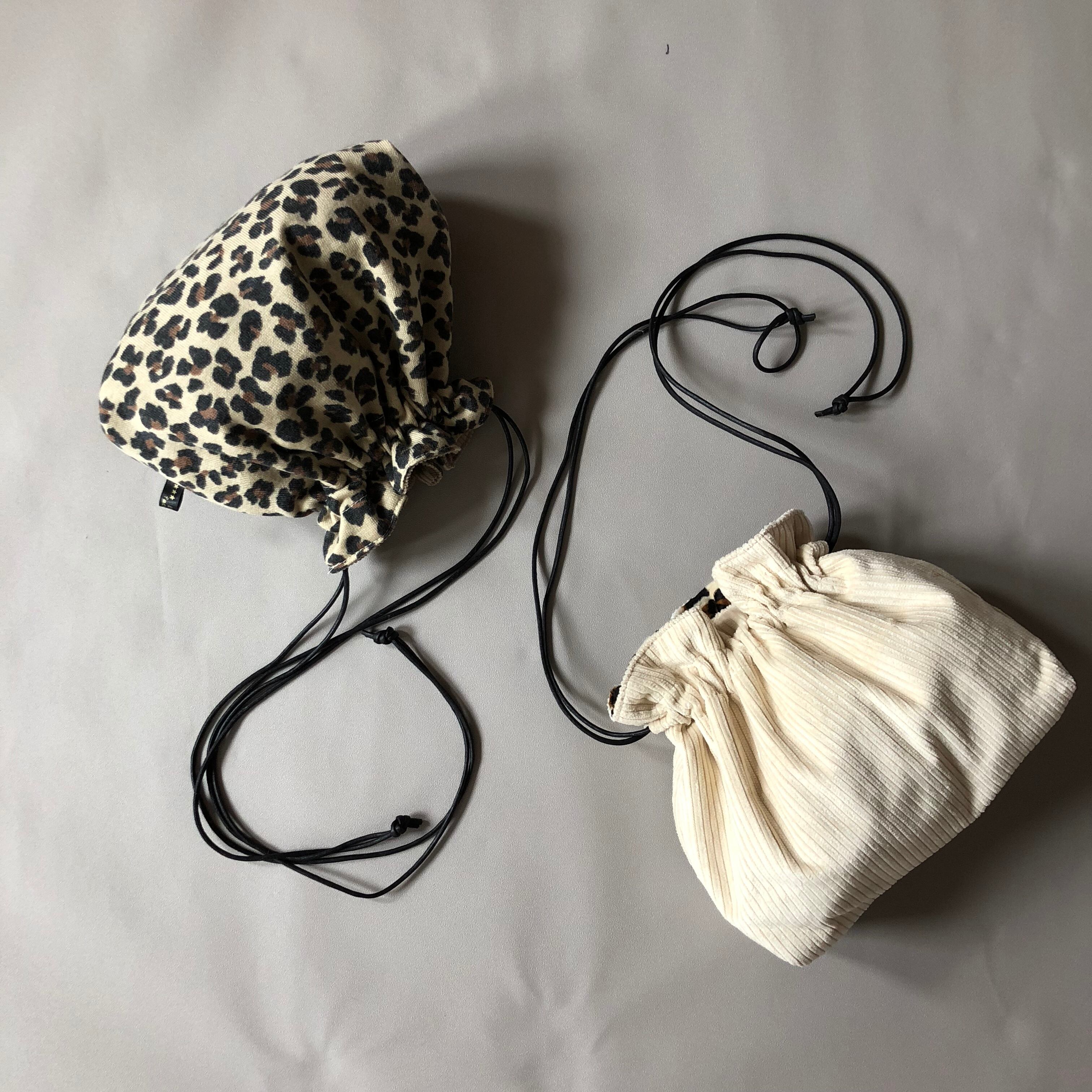 リバーシブル巾着bag(ニットレオパード)