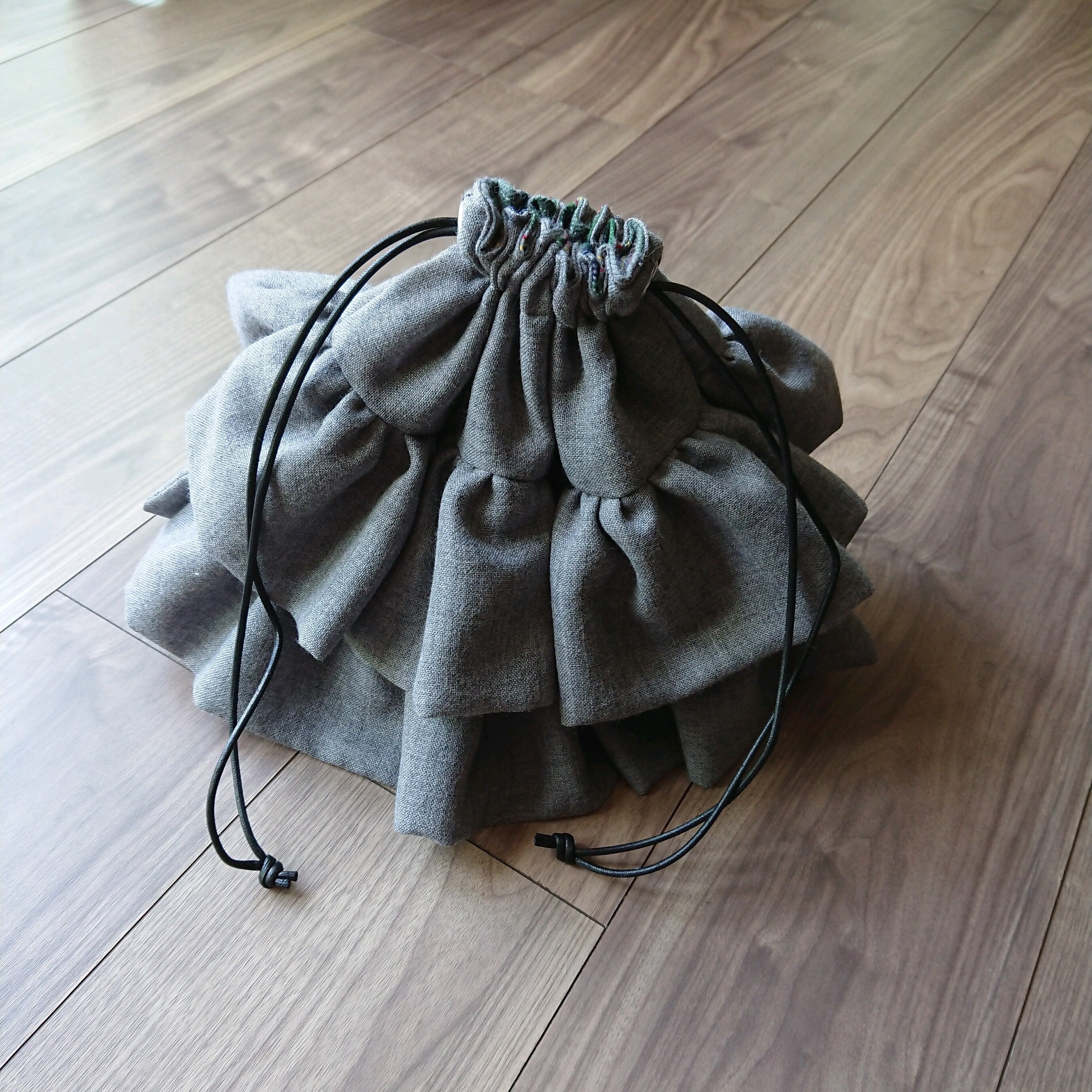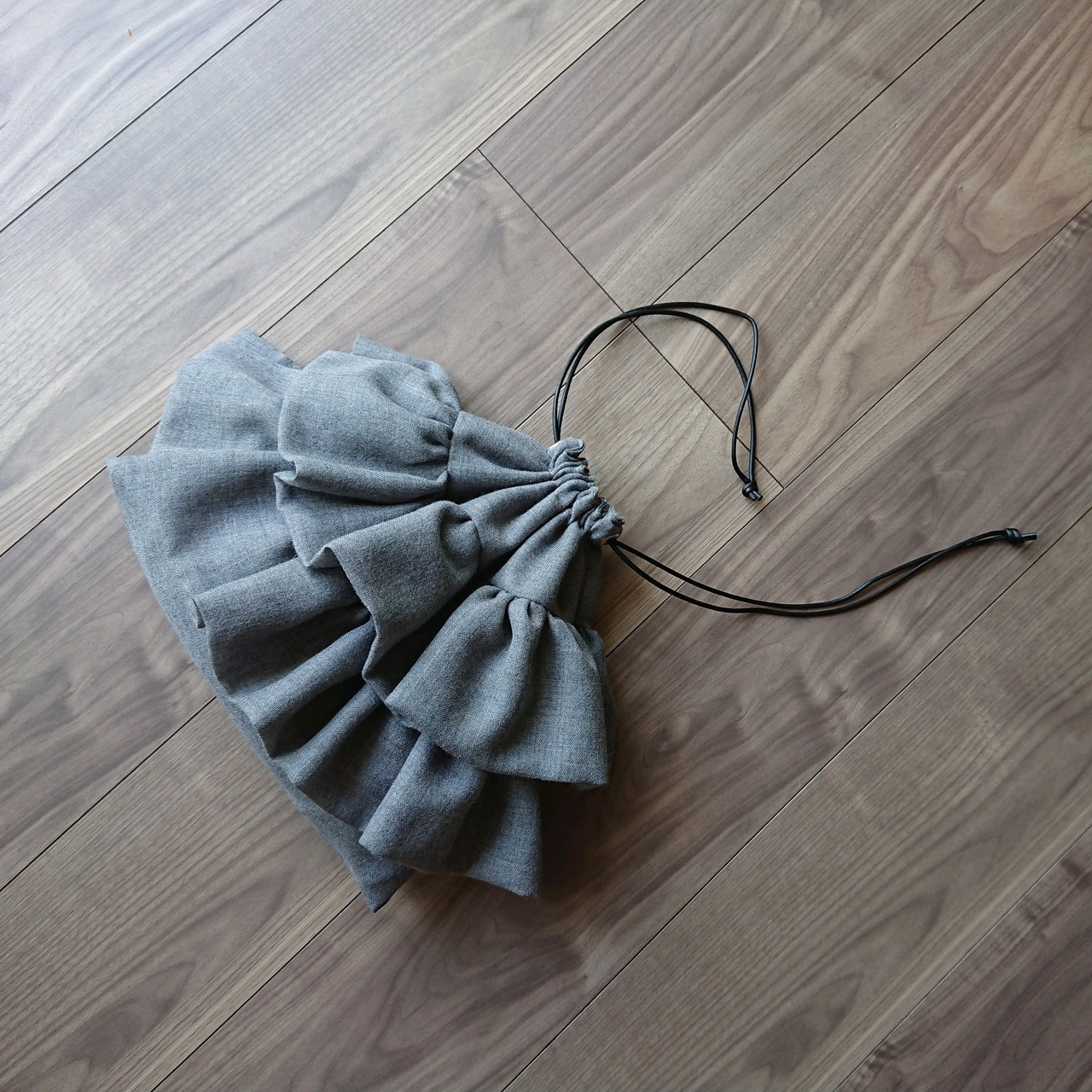 ふりふりのフリルをつけたトライアングル型の巾着です♡